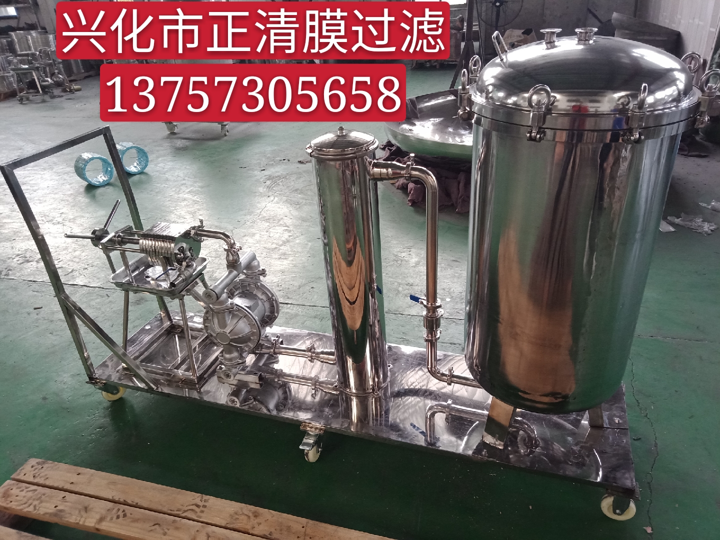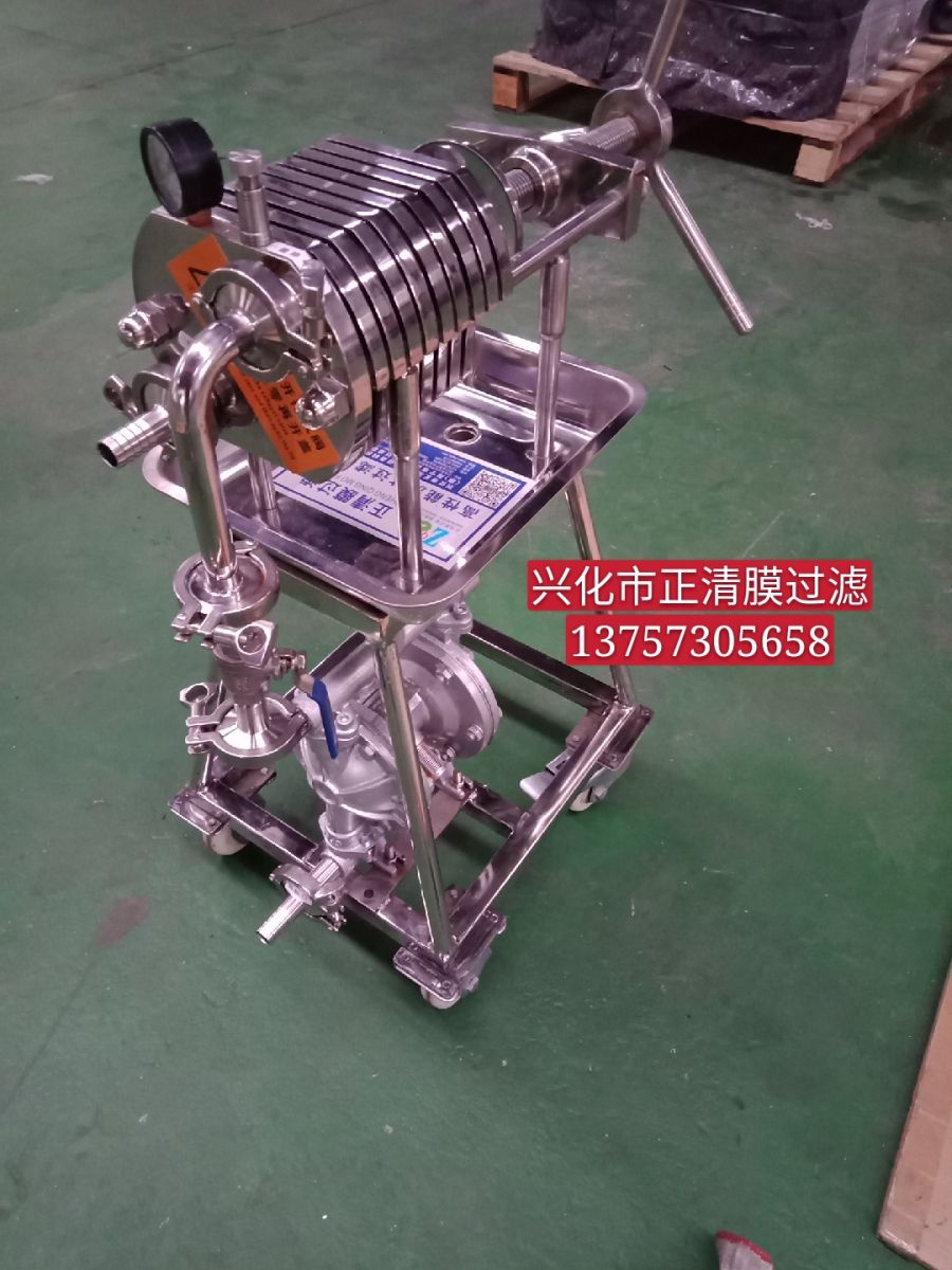 不銹鋼臥式板框過濾器,根據不同過濾介質和生產工藝(初濾、脫活性碳、除微粒、半精濾、精濾)配微孔濾膜能達到除菌處理的目的,還可根據過濾量的大小,減少或增加過濾層數,使之適合生產需要。本機密封部件采用醫(yī)用硅橡膠或氟橡膠,無滲漏,密封性能好。本機還可根據用戶需要,特制多級過濾裝置,一級放較粗的濾材,二級放較細的濾材,既節(jié)省了時間及設備又提高了過濾精度。板框過濾器配上微孔濾膜是目前解決過濾活性碳,微粒的理想設備。