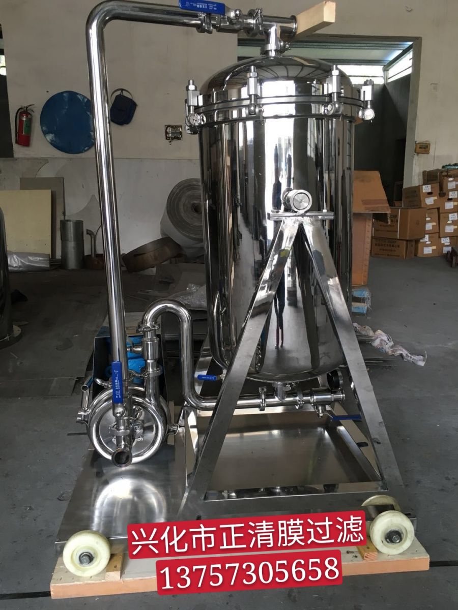 保溫加熱鈦棒過濾器,本機有活動支架和固定支架兩種,進出口快卡及法蘭接口。一般用于粗濾或中間過濾。濃度較高產品過濾可夾層加溫提高過濾速度。