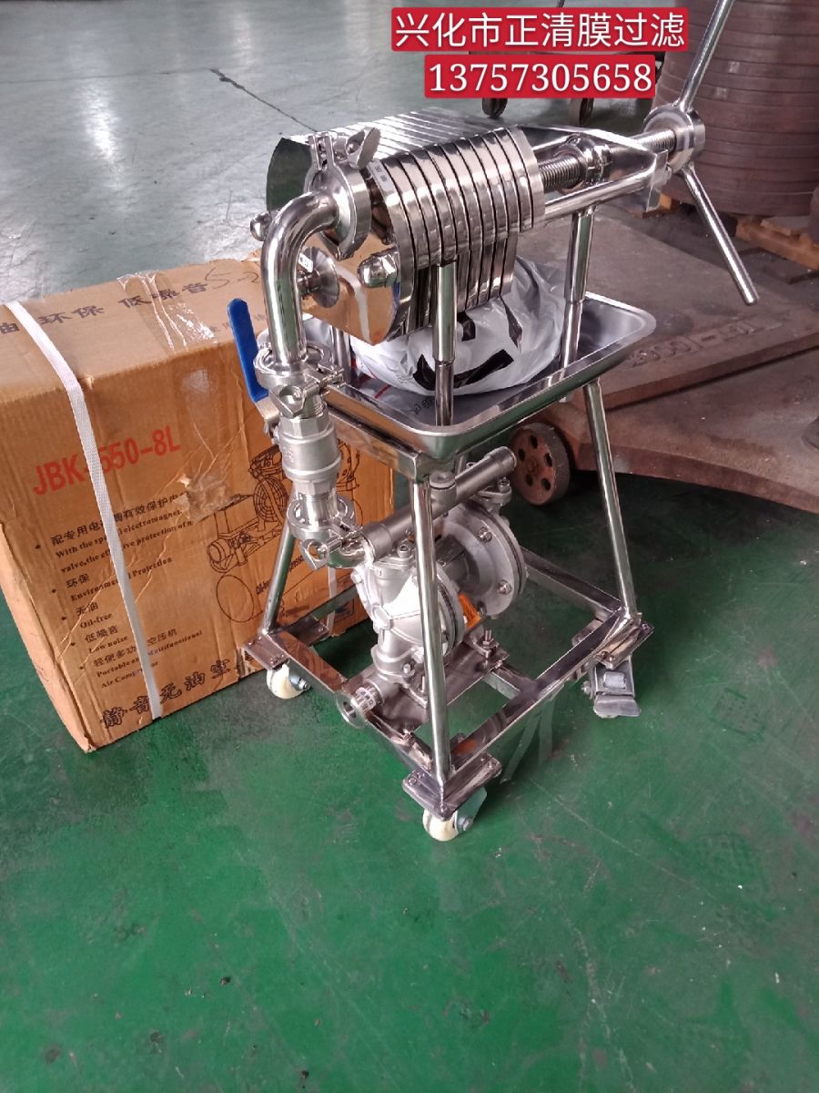 本機為不銹鋼多層板框壓濾機,適用于濃度50%以下粘度較低,含渣量較少的液體作密閉過濾以達到提純,滅菌、澄清等精濾、脫活性碳、除微粒、半精濾的要求,直接選用微孔濾膜,可不經微孔薄膜過濾器過濾可達到無菌過濾之目的)。本機過濾面積大,流量大,適用范圍大,所以在制藥、化工、食品等行業(yè)有廣泛用途,應用在制藥廠針劑藥液之過濾,效果甚佳。