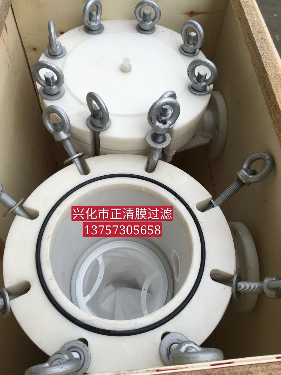 袋式過(guò)濾機(jī)是一種壓力式過(guò)濾裝置,主要有過(guò)濾筒體、過(guò)濾筒蓋及支撐網(wǎng)和螺紋,法蘭結(jié)構(gòu)。PVC/PP濾袋加強(qiáng)網(wǎng)等主要部件組成,濾液由過(guò)濾機(jī)外殼的旁側(cè)入口管流入濾袋,濾袋本身是裝置在加強(qiáng)網(wǎng)籃內(nèi),液體滲透過(guò)所需要細(xì)度等級(jí)的濾袋即能獲得合格的濾液,雜質(zhì)顆粒被濾袋攔截。該機(jī)更換濾袋十分方便,過(guò)濾基本無(wú)物料消耗。