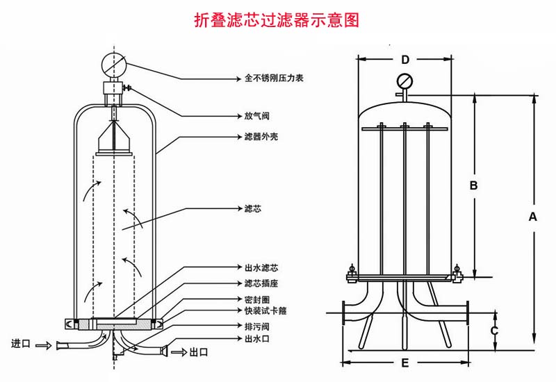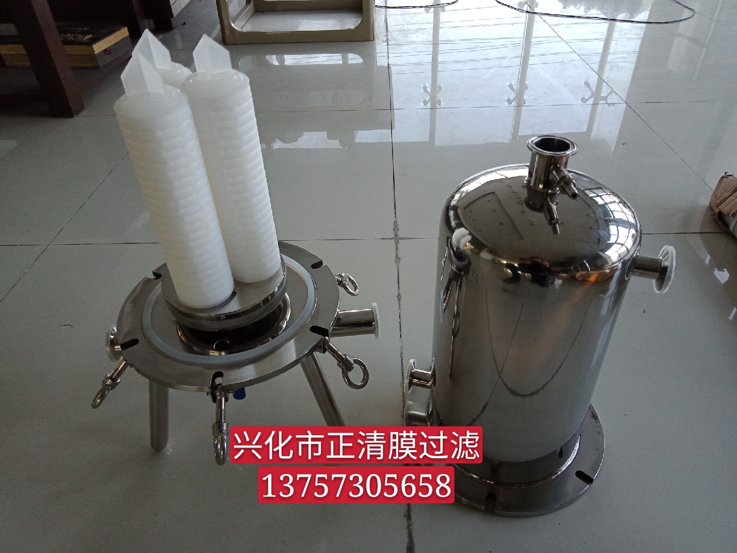 微孔折疊式過濾器,圓柱體結(jié)構(gòu),由SUS316L 或SUS304 全不銹鋼制成,以折疊式濾芯為過濾元件,可以過濾液體、氣體、0.1um 以上的微粒和細(xì)菌,過濾精度高、過濾速度快、吸附少,無介質(zhì)脫落,不泄漏、耐酸堿、耐腐蝕,清洗方便,可帶反沖功能等優(yōu)點,是生物醫(yī)藥純水、飲料、生化水處理、環(huán)保等行業(yè)的理想過濾設(shè)備。