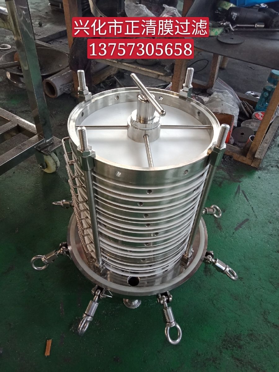 不銹鋼立式板框過濾器,是新研發(fā)的一種新型層疊式板框液體固液分離過濾器,經(jīng)我廠多年來生產(chǎn)過濾器的實踐經(jīng)驗制造而成的,本機廣泛運用于化工、醫(yī)藥、石油環(huán)保等行業(yè),對各類液體中微小雜質(zhì)進行過濾、澄清,提純處理的新型設備。用于脫粉末狀活性炭,是很理想的設備,本機采用SUS304或SUS316L優(yōu)質(zhì)不銹鋼材料制造,本機內(nèi)外拋光達400目,符合Gmp標準,工藝制作精良,性能安全穩(wěn)定,抗腐蝕,經(jīng)久耐用,結(jié)構(gòu)新穎,操作簡便,靈活節(jié)能,適應性強的多用途過濾設備。(本機可以初濾,脫碳、深層過濾、,半精濾,精濾) 本機過濾裝置是由多層重疊過濾網(wǎng)板和過濾框組成,網(wǎng)板孔由電腦打孔,孔密小均勻,這可保證每層過濾網(wǎng)板上的濾材壓力均勻,使過濾精度優(yōu),原液體經(jīng)過加壓進入筒體內(nèi),從過濾框四周孔進入,再經(jīng)網(wǎng)板上的過濾介質(zhì)從網(wǎng)板中心多個小孔出來,合格液體排出。
